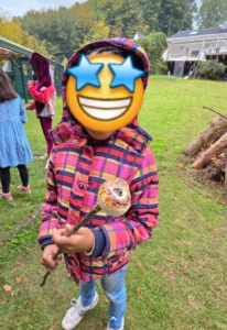 Heute öffnet Cleo das nächste Türchen. Sie gehört auch zu den KiTiNa Kindern und genießt hier ihr Stockbrot 🙂